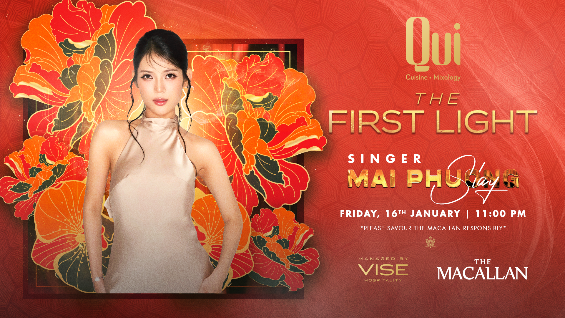 Cho khái niệm Lounge ẩm thực này, kết hợp các màu sắc đậm nổi bật với các đặc điểm hình ảnh đồ họa mạnh mẽ; sự hòa quyện của các yếu tố thiết kế phương Đông và phương Tây một cách mượt mà. Bao gồm 3 không gian chính: Sân đón, Khu vực ngồi Booth và Phòng Thư viện VIP. Quầy bar vừa là trung tâm và cũng là trái tim của QUI với các tác phẩm nghệ thuật đường phố châu Á hiện đại được treo trên tường, kết hợp với các chi tiết nội thất truyền thống nhưng lạ mắt hơn. Đối với những ai muốn tổ chức sự kiện riêng tư, QUI cung cấp cho bạn một khu vực VIP với quầy trưng bày đồ ăn tuyệt vời.